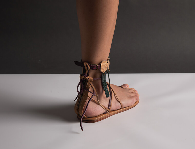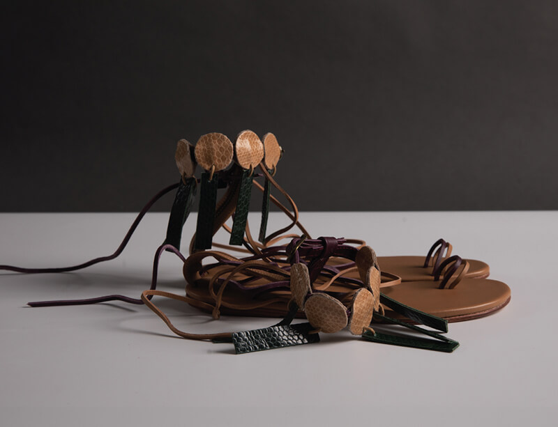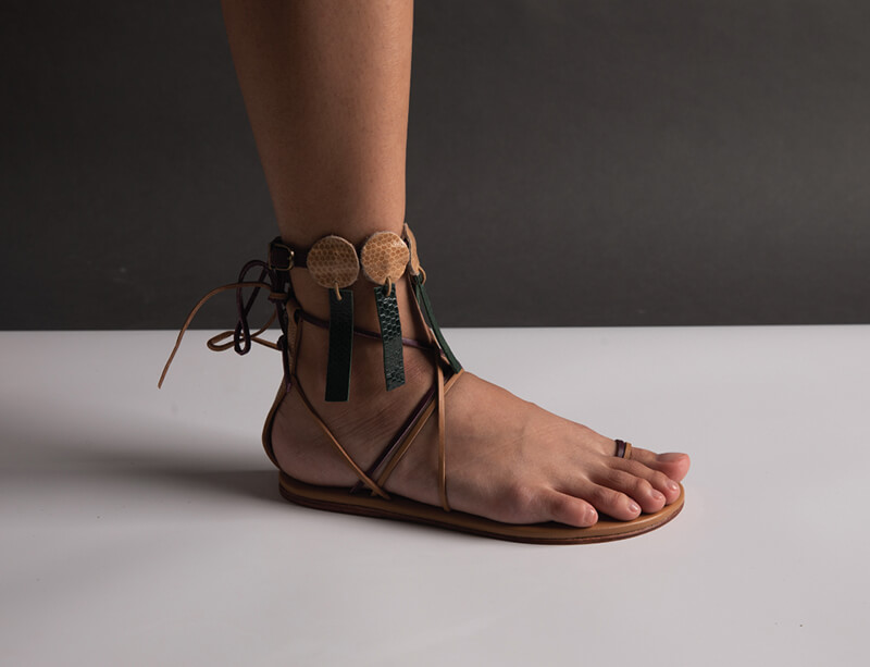 FLAT SANDALS WITH REMOVABLE SNAKE SKIN BELT DETAILS