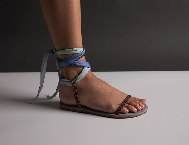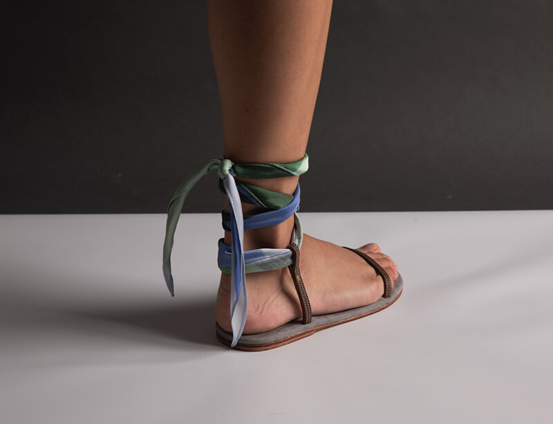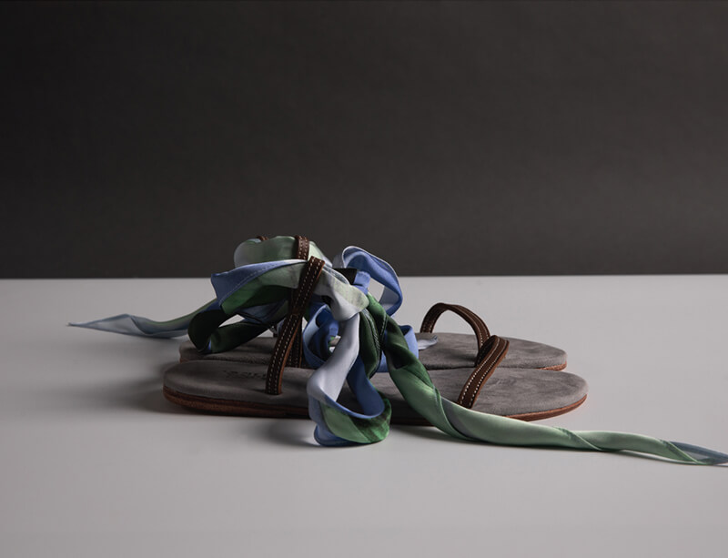 FLAT SANDALS WITH SATIN ANKLE STRAPS.